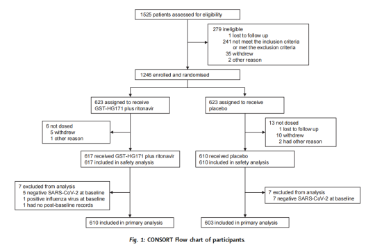 此次2-3期双盲、随机、安慰剂对照试验,入组患者为出现症状3天以内的轻度至中度新冠感染患者,随机(1:1)接受750 mg先诺特韦联合100 mg利托那韦治疗或安慰剂治疗,日二次,共5天。主要疗效终点是至症状持续消退的时间,即连续两天没有出现11项COVID-19相关症状。在这项发表于NEJM的先诺特韦和利托那韦联合治疗的2-3期研究中,我院共入组346例新冠感染患者,是所有参研中心入组例数最多的单位。该研究结果表明早期服用先诺特韦联合利托那韦可缩短COVID-19成人患者至症状消退的时间,且无明显安全问题。