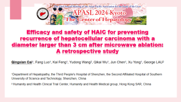 稿件来源:本网 发布时间:2024-03-30 15:37:193月27-31日,第33届亚太肝脏研究协会(APASL)年会在日本京都举行,海角社区 (南方科技大学第二附属医院)肝癌诊疗中心蔡庆贤教授口头报告了2项原发性肝癌相关临床研究成果。