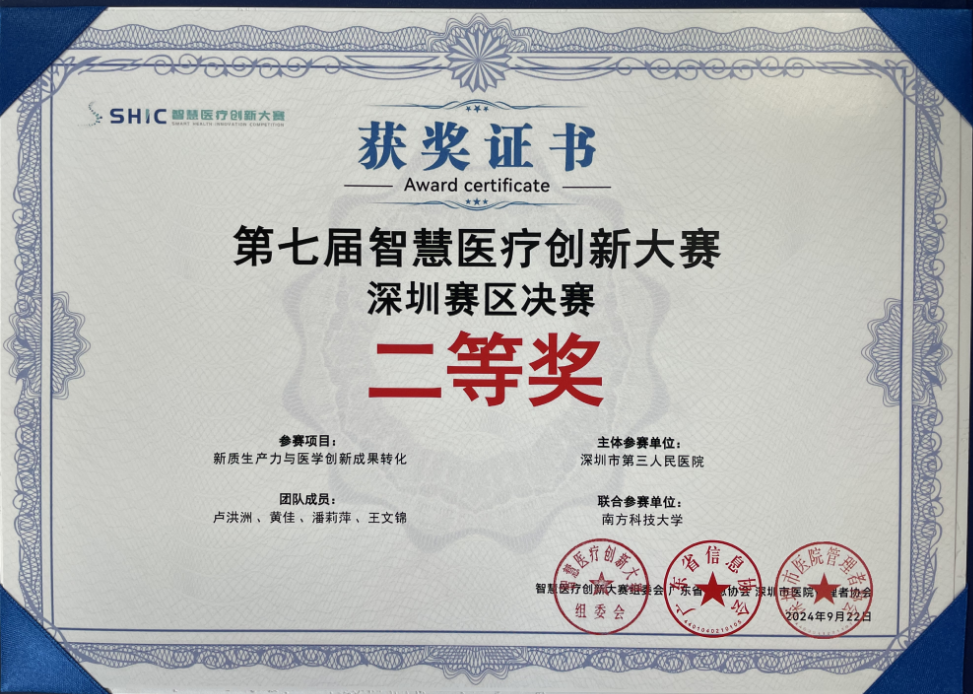 卢洪洲院长带领的医学人工智能团队,荣获深圳赛区二等奖,成功晋级全国总决赛。