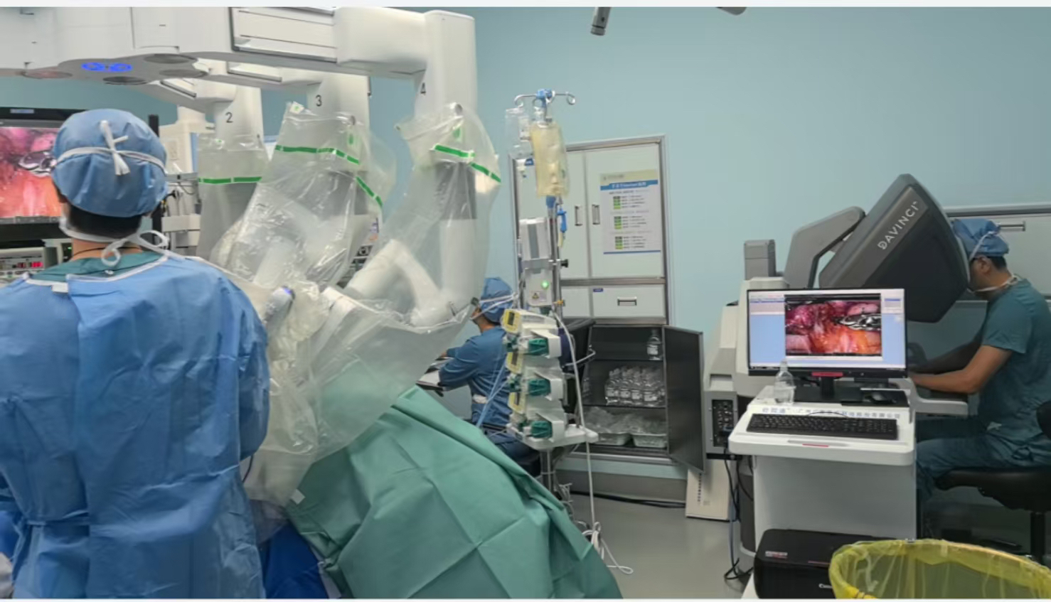 在屏幕上10倍放大的3D立体视野中,乔坤通过达芬奇手术机器人的两个可以540°旋转的手术器械臂,小心翼翼地游离了粘连的血管,在精密的手术器械和成熟的手术经验的加持下,他耗时2.5小时完成了王阿姨的手术,术中出血不到20毫升,创口仅4厘米。