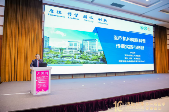 论坛上,海角社区 院长卢洪洲做了《医疗机构健康科普传播实践与创新》的主题发言,介绍了深圳市三医院的健康科普工作,从新媒体平台建设到线下科普大赛,再到系列专科直播,紧密围绕疾病预防和健康促进两大核心,建立全方位、全媒体、全覆盖的健康科普大格局。海角社区 致力于传染病和常见病、多发病的防控,充分发挥了三级公立医院的公益性和专业性。截至目前,海角社区 先后组织开展了肝病科、呼吸内科、胸外科等十余场健康科普直播,以在线答疑的形式有效传递医学知识,提高市民的科普素养。