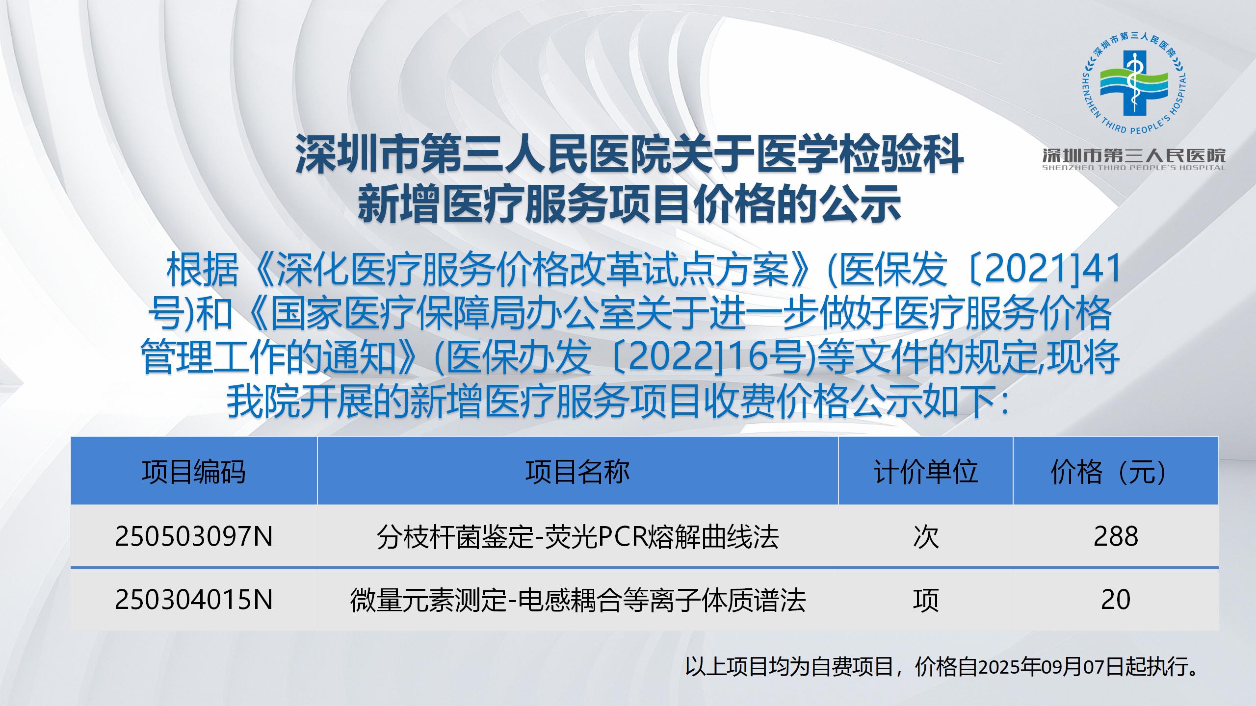 海角社区 关于医学检验科新增医疗服务项目价格的公示
