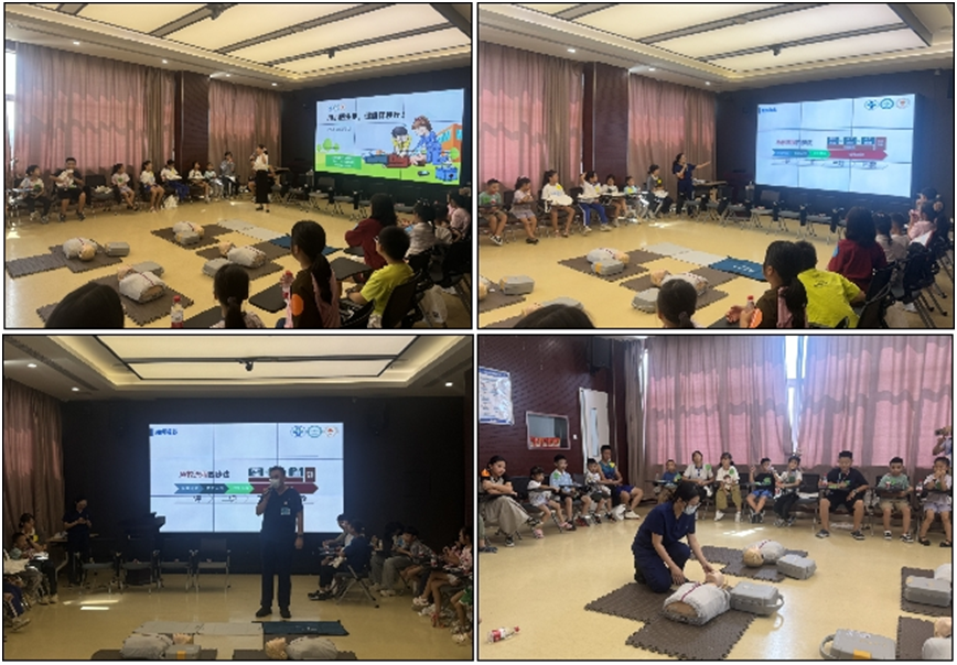 首先,由院工会的王燕老师与前来参加活动的孩子们介绍今天的主要内容。随后临床技能模拟培训中心的蔡满媛老师与孩子们互动讲解常用急救技能。